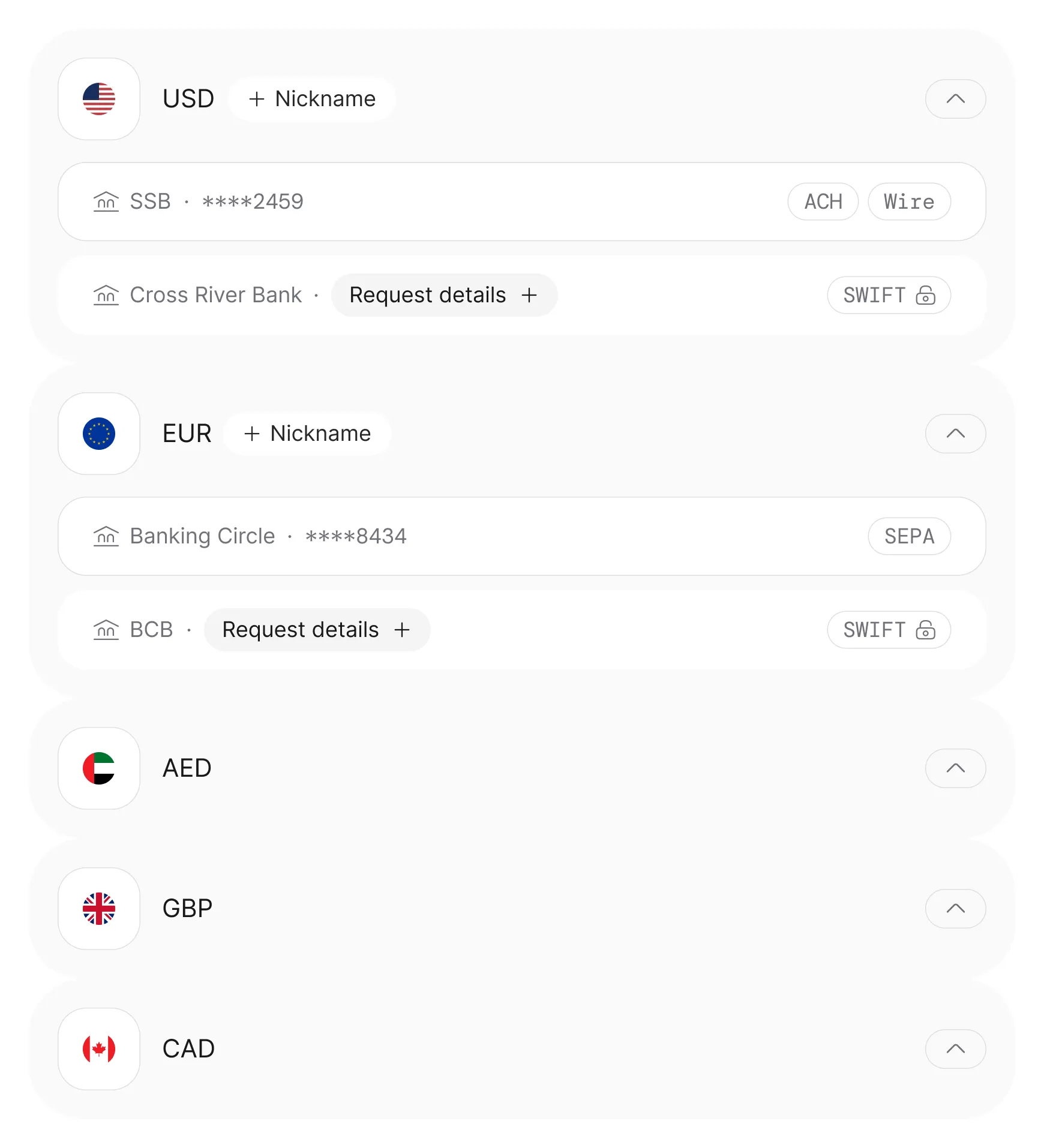 Crypto converts to fiat and settles to a bank account via SEPA, SWIFT, ACH or Wire. Same banking network, same rails — no separate fiat partner needed.